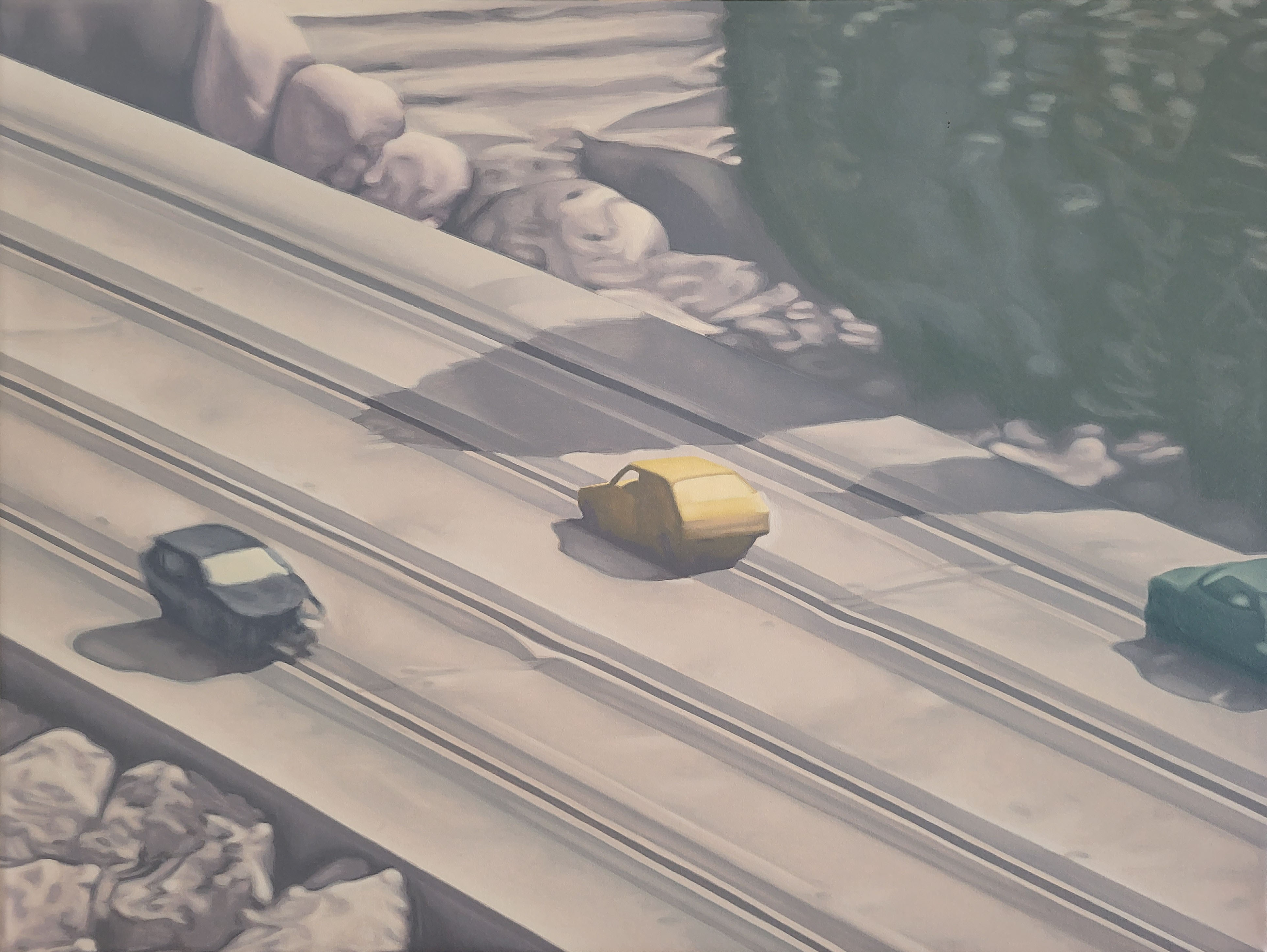 Autostrada deriva dal fotogramma di un filmino VHS di famiglia girato nell’estate del 1992 nel parco tematico “Italia in Miniatura” a Rimini. L’immagine mostra la ricostruzione di un’autostrada con delle piccole auto giocattolo che corrono attraverso i binari.